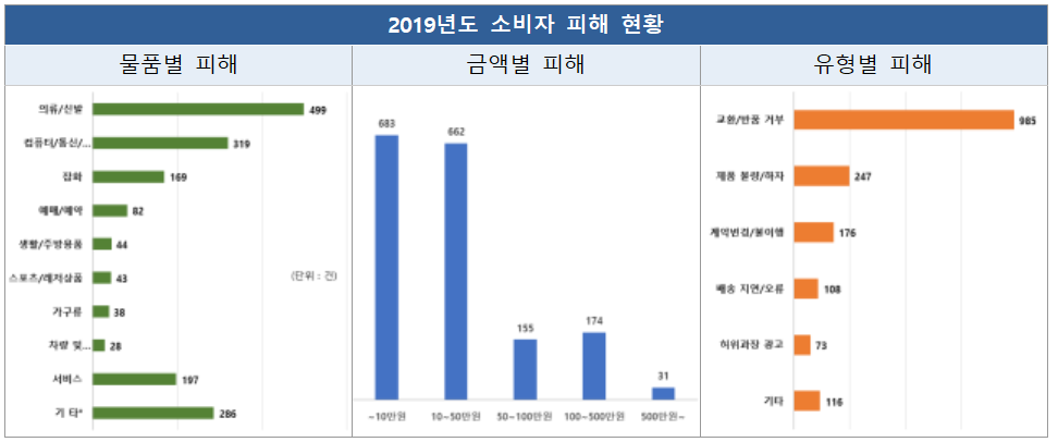 o 분쟁조정 신청은 10만원 또는 50만원 이하 금액에서 주로 발생(78.8%)하고, 국민 생활과 밀접한 의류․신발(29.3%), 컴퓨터․가전(18.7%), 잡화(9.9%) 등의 상품 거래 시 ▲판매자의 반품·환불 거부, ▲구매자의 단순변심에 의한 거래 취소 등이 주요 원인으로 나타났다.