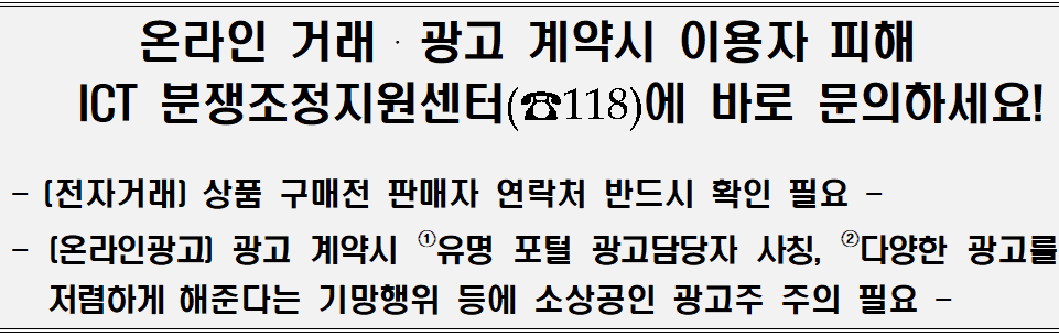 o 따라서, 온라인 광고 계약시 피해 방지를 위해서는 전화로 온라인 광고 권유를 받을 때부터 이용자 주의가 필요하다. 광고계약 체결 전 ▲계약 주체, ▲계약서 약관 내용, ▲광고비 산정방식, ▲실행가능 여부 등을 꼼꼼히 확인해야 한다.