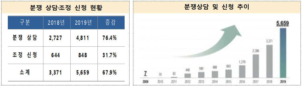 o 이는 ▲온라인 쇼핑 이용 증가(’18년 62% → ‘19년 64.1%), ▲포털․블로그․카페 등 SNS를 활용한 바이럴 마케팅* ▲온라인광고 시장규모 확대(’18년 5.7조원 → ‘19년 6.5조원)에 따라 B2C, C2C 간의 분쟁도 매년 증가하는 것으로 분석된다.